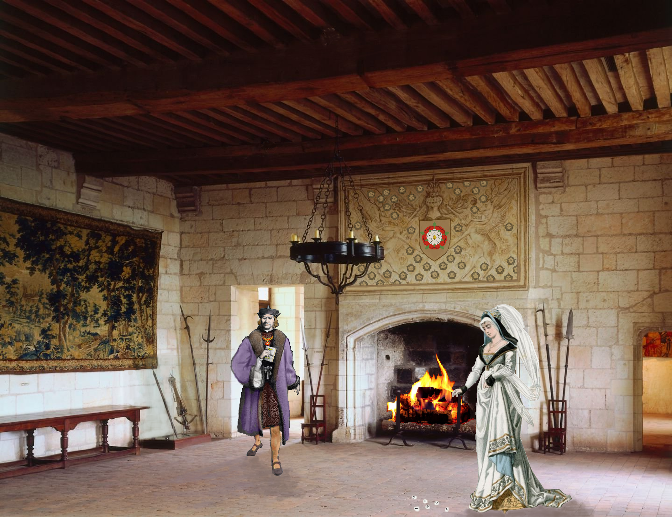 Figure 2: The setting is the Royal Lodge, Château de Loches sud-Touraine, France. The figure of Elizabeth of York adapted from French Noblewoman, C.E. Doepler, middle of the 15th century. Henry is from Look and Learn.