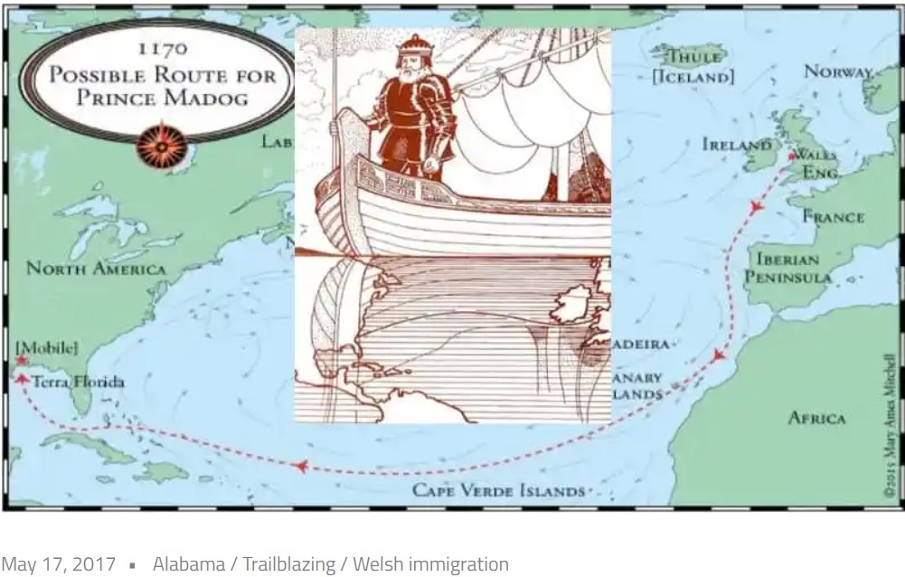 But now it seems the Welsh have thrown their hat into the ring as well. In this article it is declared that “….In 1170 A.D., a certain Welsh prince, Madoc ab Owain Gwynedd, sailed away from his homeland, which was filled with war and strife and battles between his brothers. Yearning to be away from the feuds and quarrels, he took his ships and headed west, seeking a better place….”