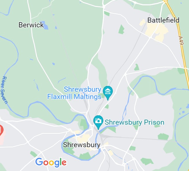 Well, the important Percy family hailed from Northumberland so Hotspur’s immediate thought was that the prophecy was about Berwick-upon Tweed, near the Scottish border. But in 1403, as the Battle of Shrewsbury was about to begin, he discovered that the field was close to a hamlet known as Berwick (see the above map from Google Maps). On being told this he went ghastly pale and knew that his fate was to die in the battle. And he did.