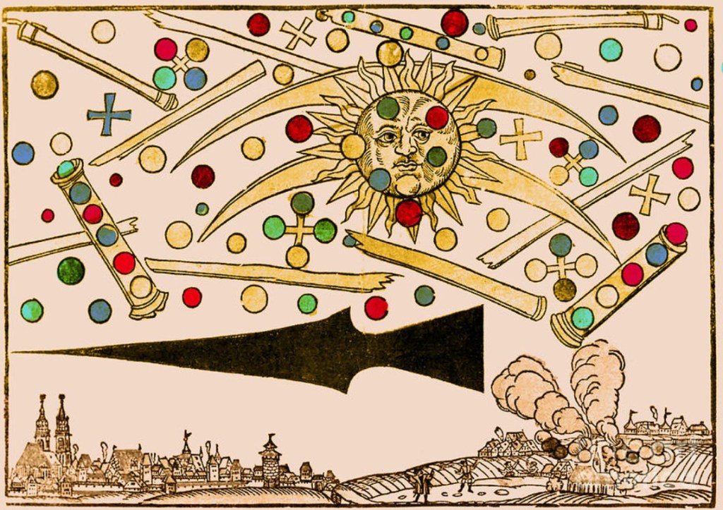 Now, events in Nuremberg seem to have been particularly astonishing, and if such things really did appear then I can well understand the awe and alarm of the citizens. These wondrous things were viewed as miracles…or terrible portents of horrors to come. Today, of course, we wonder if they’re signs of life elsewhere in the vastness of outer space.