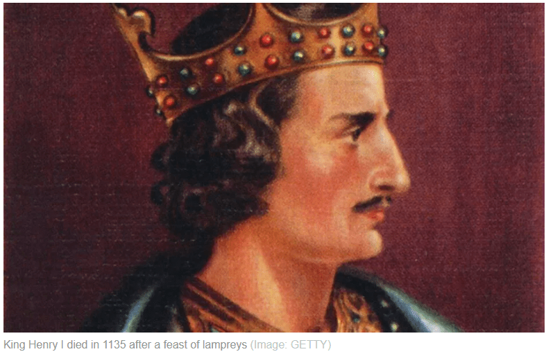 Ah, but then comes the magic word “lampreys”. Henry I! Um, except that he was 66/67 when he turned up his toes. Hardly a slip of lad. So I guess the Daily Mail just threw in “young” for the hell of it.