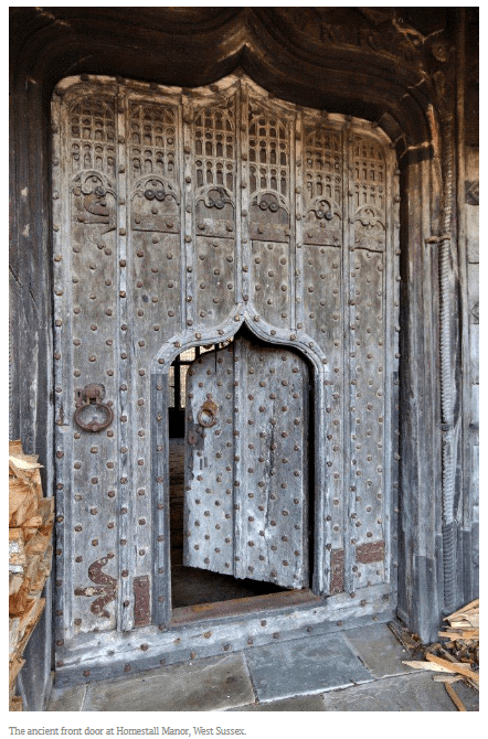 This astonishing door is said to be 1000 years old, belongs to Homestall Manor in West Sussex and came originally from a French monastery.