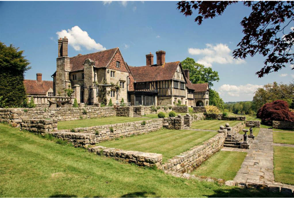 Ah, but the house as it is now doesn’t all belong to the present site, for it seems that at the beginning of the 20th century the wife of the then owner, whisky distiller Lord Tommy Dewar, found it to be “….simply too small for the kind of lavish entertaining she had in mind. With the nonchalance of the very rich, her husband responded by buying Dutton Hall, a large Tudor mansion in Cheshire dating back to Domesday, which he had dismantled, brick by brick and oak beam by oak beam, and rebuilt on the estate to form the present south-west wing of Homestall Manor….” So the house you see in the photograph below is a hybrid, partly belonging to West Sussex and partly to Cheshire.