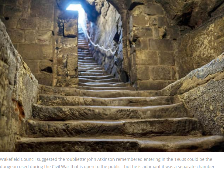 “….Mr Atkinson said the small chamber was hewn from rock, accessed via a trapdoor and wooden steps and not connected to other dungeons or underground rooms that are already open to the public at the castle near Wakefield….”
