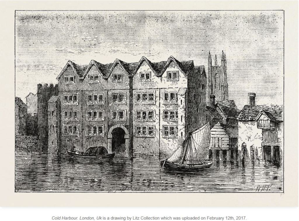 The Holand dukes resided at Coldharbour, of which readers of this blog will know a great deal. Famously, in 1397 John Holand held a grand banquet there for his half-brother Richard II, before they rode off with a force to Pleshey in Essex arrest Richard’s uncle, the troublesome Duke of Gloucester, who soon met a suspicious death in Calais.