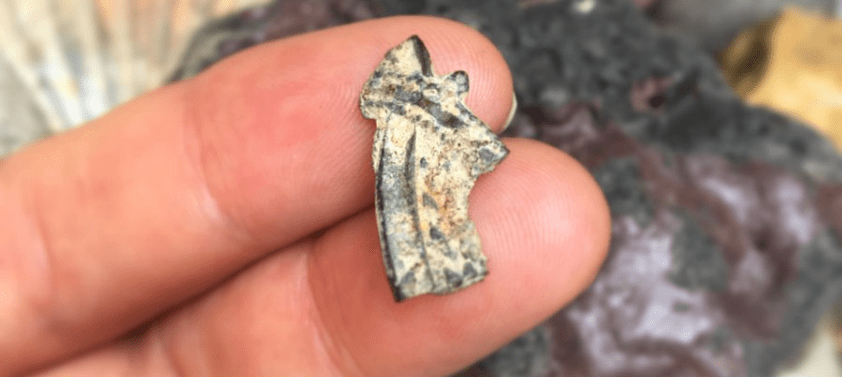 “….Found this small piece of lead on the Thames Foreshore while mudlarking last week. Turns out to be part of a crowned wheat ear dating from 1471, made from pewter, the badge of Henry Holland, Duke of Exeter & supporter of Lancastrian Henry VI….”