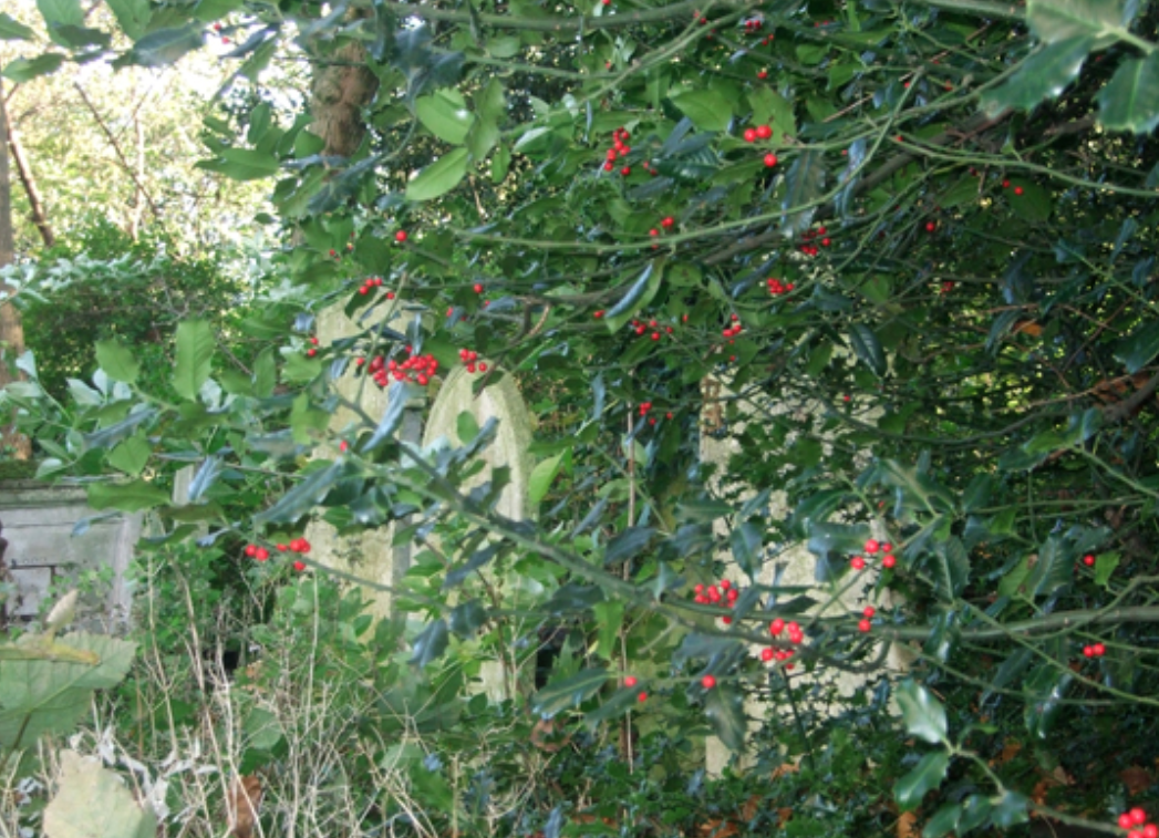 Planting a holly tree close to the house was to protect against lightning. But they could also be planted in churchyards!
