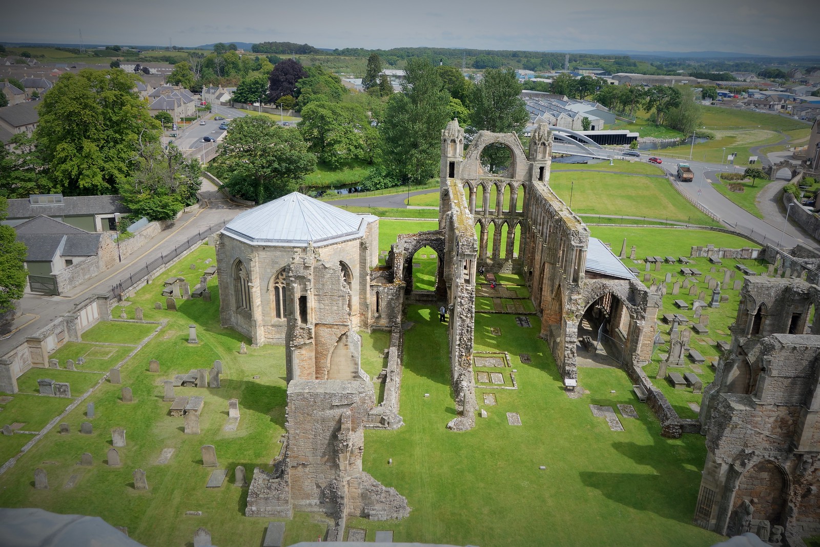 Regarding the above photograph, and at the risk of being facetious, I have to comment that Elgin Cathedral seems to have been “got at” by Columba before he turned up his holy toes One wonders to whom he sold all that lucrative roof lead….