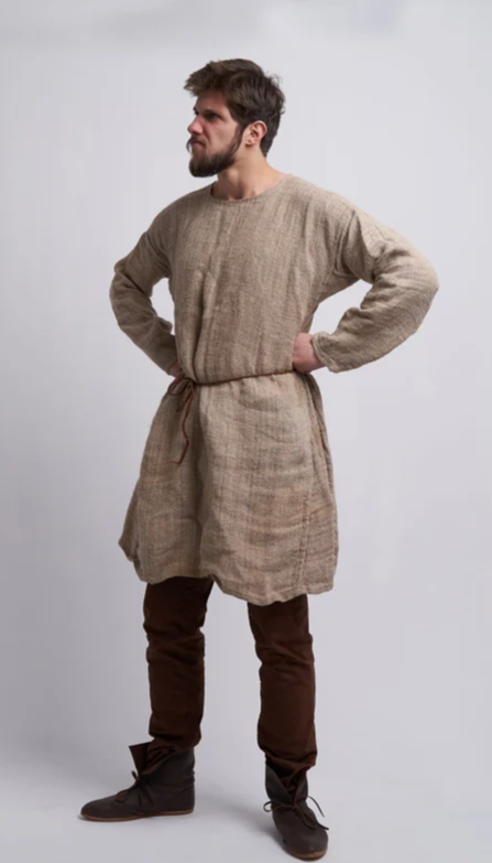 Nettle fibres can also be woven into shawls, blankets, and knitted garments too, as see the jerkin and the man’s shirt below.