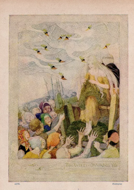 Stories of swan maidens can be found everywhere, and go a long way back. They appear in Welsh and Irish folklore. In Germany The Twelve Brothers (in German Die zwölf Brüder) was collected by the Brothers Grimm. Another Germany story collected by the Grimms is The Seven Ravens (In German: Die sieben Raben), while in Norway the fairy tale is called The Twelve Wild Ducks (in Norwegian De tolv villender). Udea and her Seven Brothers is from further afield, Libya! Not all feature nettles, but some do.
