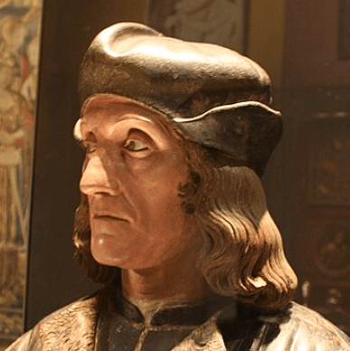 Posthumous portrait bust of Henry VII by Pietro Torrigiano, made using Henry’s death mask. From Wikipedia.