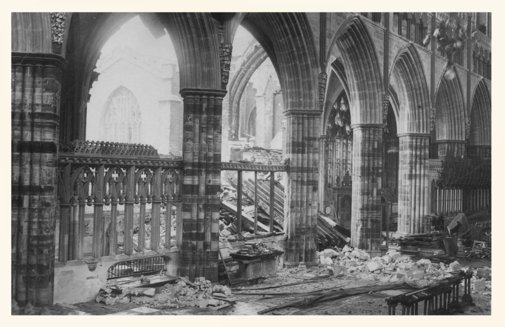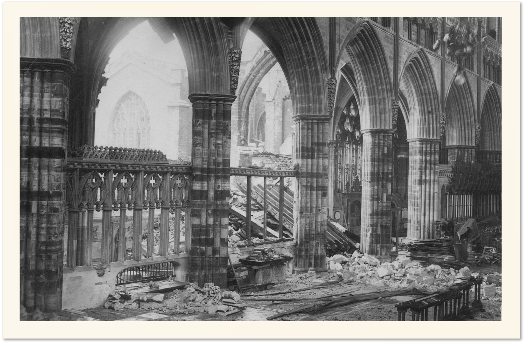 The above photograph is taken from https://www.exeter-cathedral.org.uk/wp-content/uploads/2020/05/ED-125.65-Interior_air-raid-damage-4-May-1942.png. Read more at https://www.exetermemories.co.uk/em/exeterblitz.php