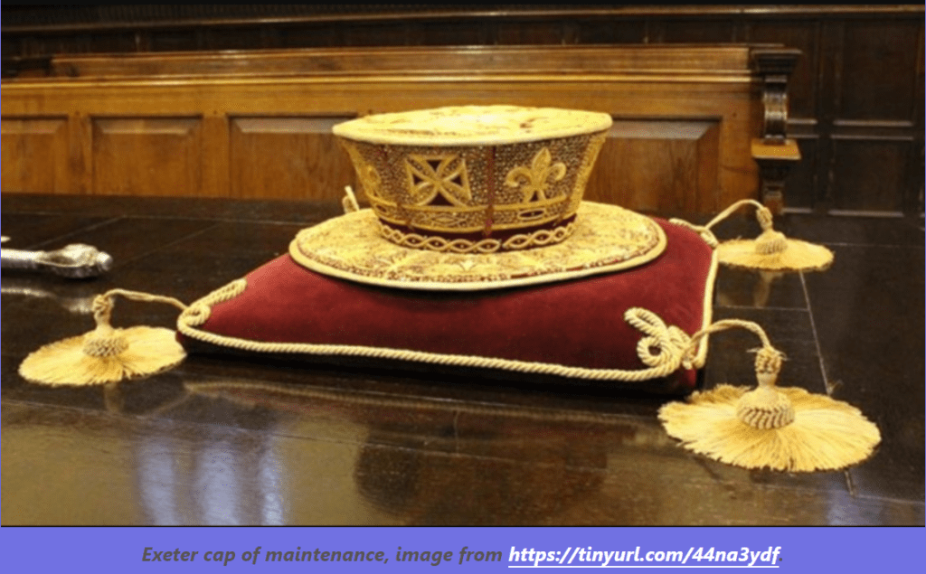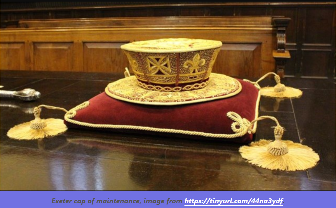 When the city (misguidedly!🙄) supported Henry VII against Perkin Warbeck the first Tudor king showed his gratitude by presenting Exeter with his cap of maintenance. I only wish some brave Yorkist had whacked him around the ears with it. Alas, it didn’t happen. https://www.devonperspectives.co.uk/exeter_1497.html)