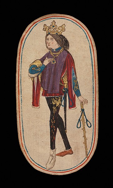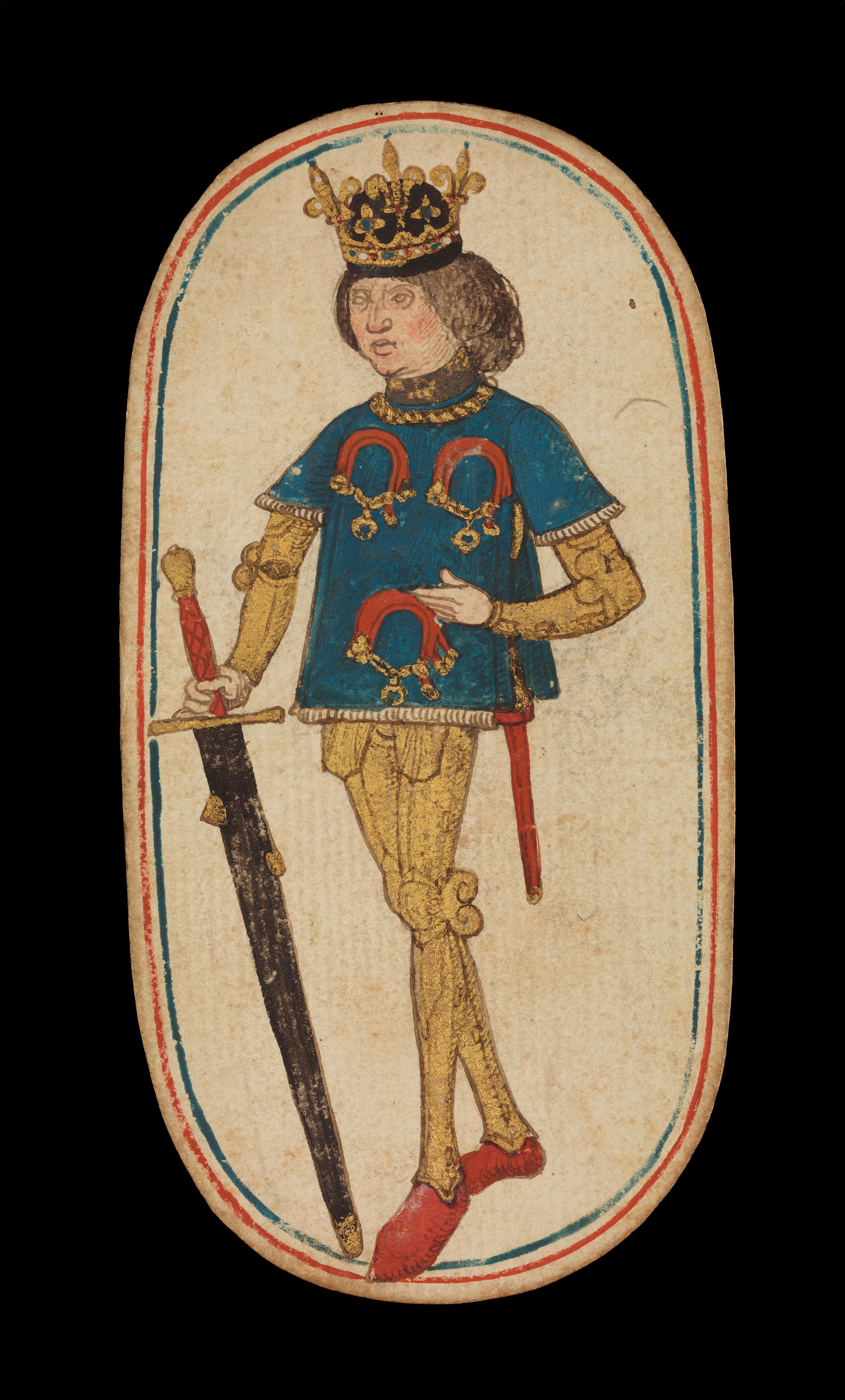 A very beautiful surviving deck of cards is the Netherlandish set, dated between 1470-1480. It clearly belonged to someone very wealthy and retains its beautiful colours even today. I could easily see Edward IV and Richard of Gloucester playing with a similar set to pass the time in Louis Gruuthuse’s palace in Bruges, during the long dark days of their exile in the winter of 1470.