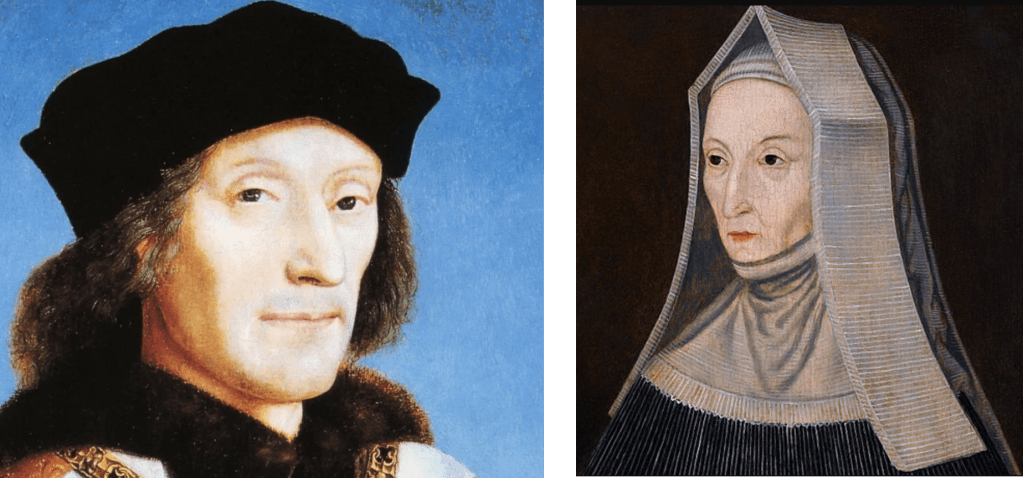 “….Henry’s first parliament also reinstated his mother with the lands and grants taken from her by Richard III. She was also given the rights and privileges of a ‘sole person, not wife nor covert of any husband’, allowing her personal control over her extensive properties. This was very unusual for the time. Immediately after Bosworth, Henry spent two weeks in close consultations with his other, learning about the ways of government, the powers at court and the like. Called at court ‘my Lady the King’s Mother’, she now signed herself ‘Margaret R’ and became extremely influential at court. Some recent sources state there was friction between Henry’s Lancastrian mother and his Yorkist wife, but it is difficult to find any real evidence. Making Thomas Stanley the Earl of Derby also enhanced the status of his [Henry’s] mother, now Countess of Richmond and Derby. When Henry reversed the attainder of his mother and curtailed the marital power of Thomas over her estates, he enabled his mother to run her own financial affairs, and the Act could be seen as the equivalent of a virtual divorce. Henry’s mother later took a vow of chastity, further isolating Stanley. Neither mother nor son ever seemed to forgive Stanley for his lack of promised support at Bosworth, and Margaret Beaufort made a will asking to be buried beside Edmund Tudor , not Stanley [https://www.englishmonarchs.co.uk/tudor_26.html]. Henry may have wished to attaint Thomas Stanley, but that would have meant that his mother was married to a traitor….”