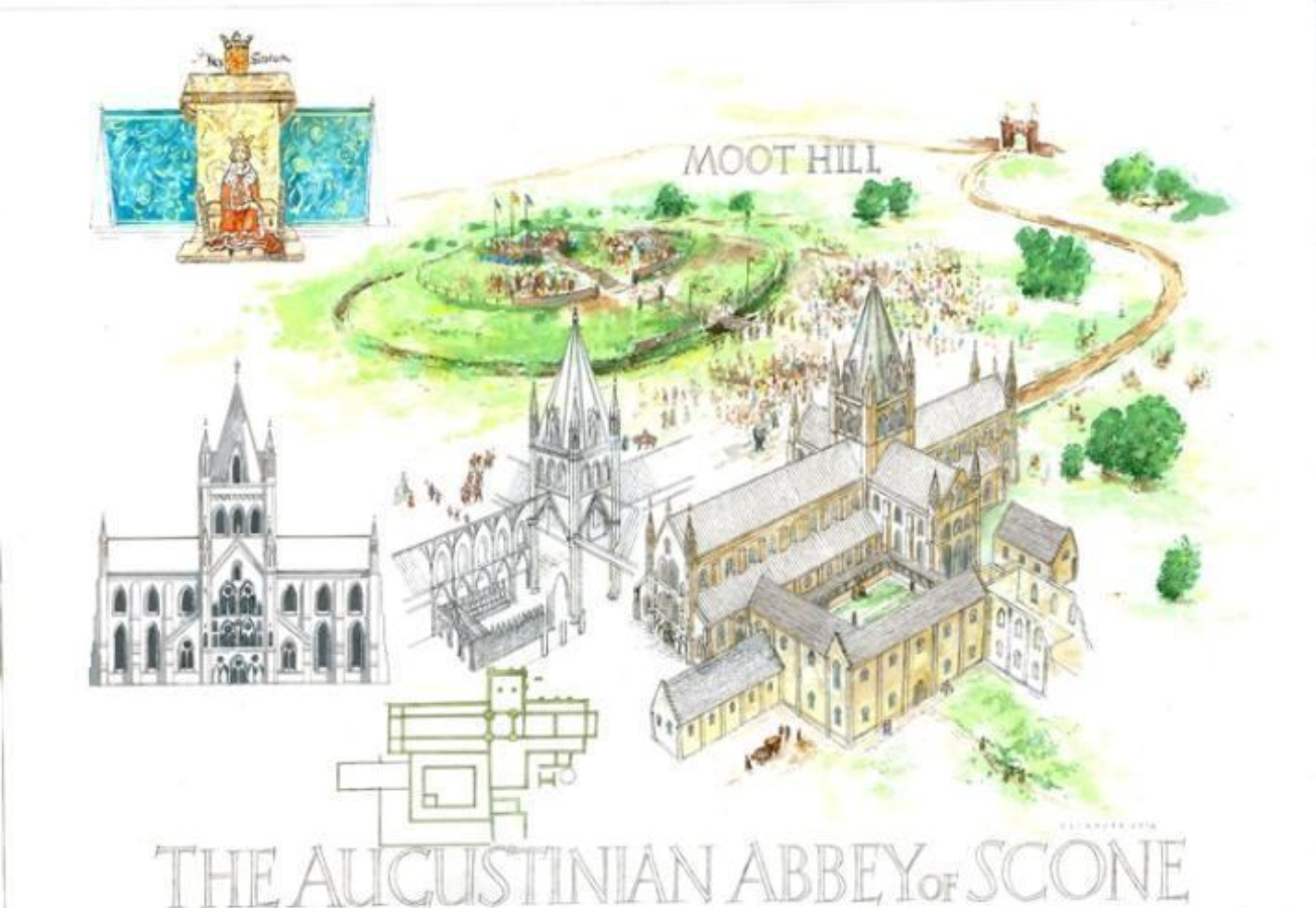 Between 1120-1122 Alexander I established an Augustian priory at Scone, to “….bolster its status as a seat of royal power and the place of inauguration of Scottish kings….” Ah yes, and that seat was, literally, the Stone of Scone/Destiny upon which many an English (and then British) monarch sat to be crowned in Westminster Abbey. It has now been returned to Scotland.