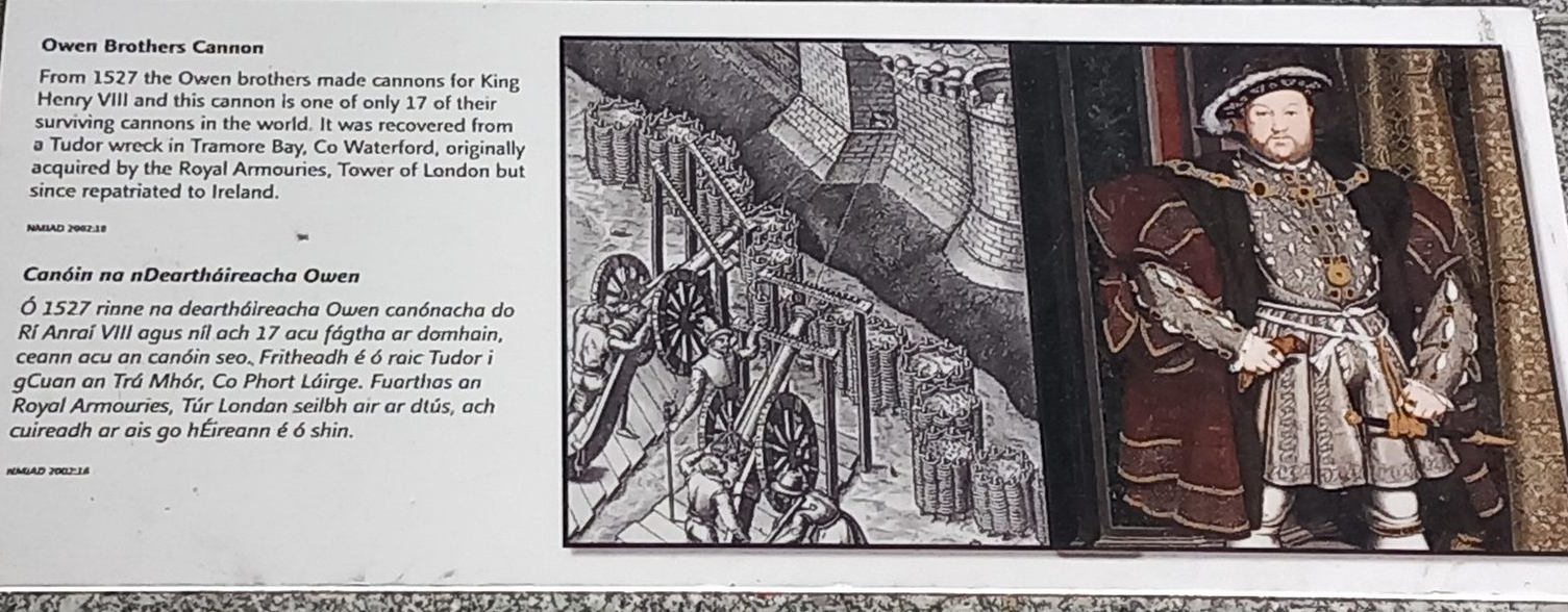 Oh, lord, I didn’t know we and the Irish Republic are locking horns over two rare bronze Henry VIII cannon taken from a wreck that was apparently lying off Waterford on the Irish coast. Under Irish law, the cannon belong to them and so were taken illegally. The cannon have been on display at the Tower of London. The wreck was HMS Post, which went down in 1566 near Tramore.