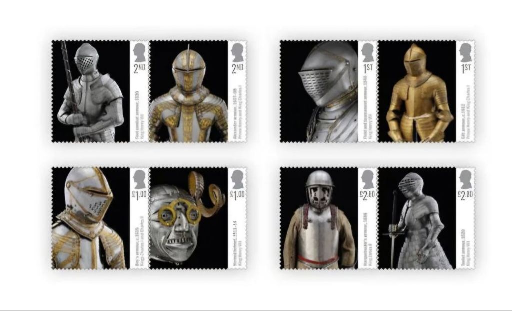 This is an interesting, new collection of stamps depicting the armour of several different kings.
