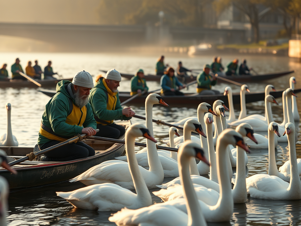 Swan Upping is the traditional means of dividing the realm’s swans equally among the Crown, the Vintners’ Livery Company and the Dyers’ Livery Company. It used to include a feast where a swan was eaten, but now its main use is as a yearly census of mute swans on the river, making it an important part of wildlife conservation.
