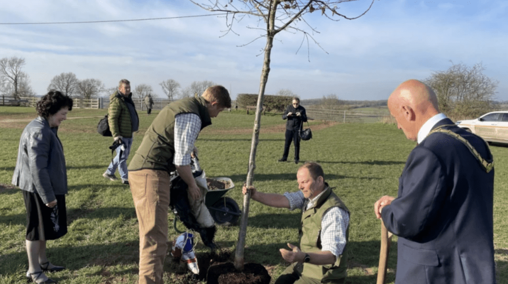 The great oak tree is 600 years old, which, if 600 years is exact, means it was in turn was ‘born’ in around 1425. Richard III himself came into the world in 1452, so perhaps he saw it as a sapling not much larger than the one that has now been planted in his honour at Bosworth Field, at the site of his cruel murder. See the planting ceremony of the new two-metre (6.5ft) sapling in the photograph below.