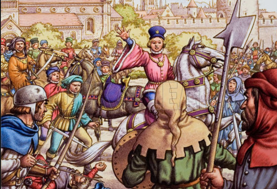 I do hope those involved in this movie are aware that the king in question was Richard II, aged only 14 years and 5 months at the time. He wasn’t allowed to be in charge of anything, being totally in the grasping, bullying hands of the ambitious men around him, especially his paternal uncles. Everything he promised—when he famously and courageously confronted the rebels—was probably what he truly intended, but it was his elders and “betters” who undid it all and consigned the boy-king to history as a liar and trickster.
