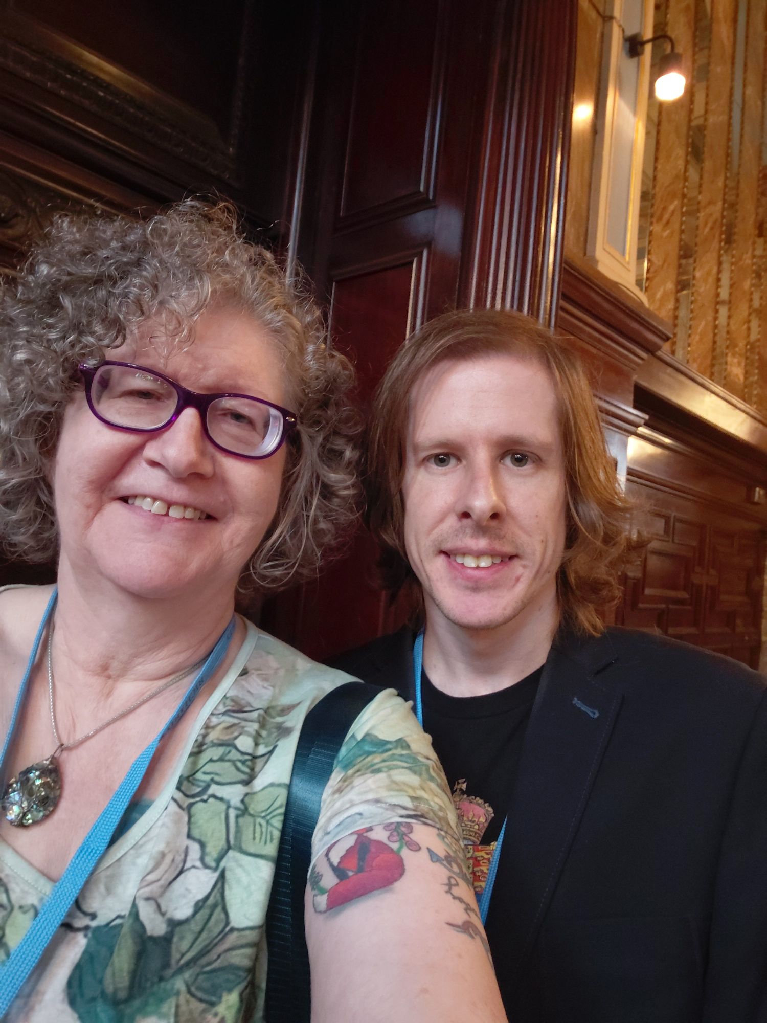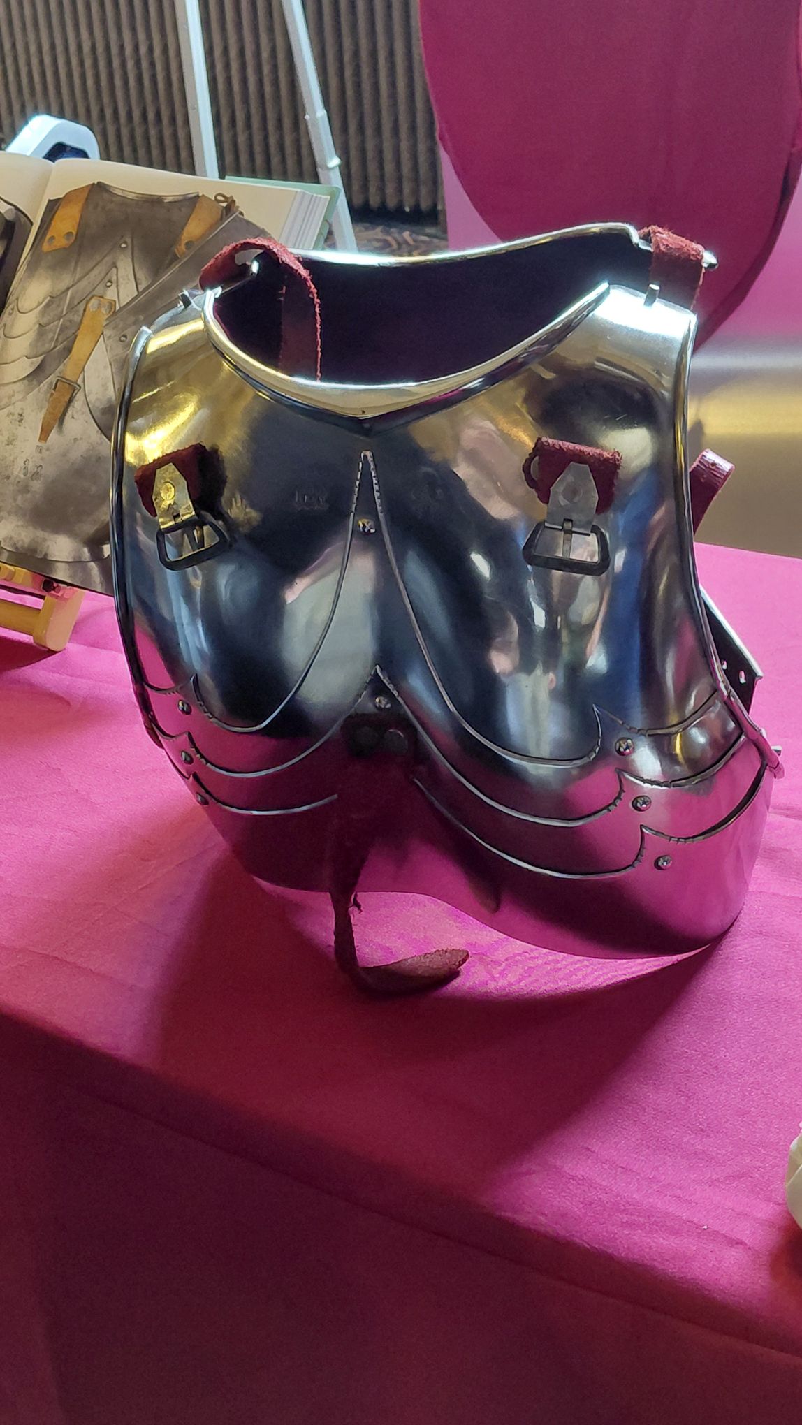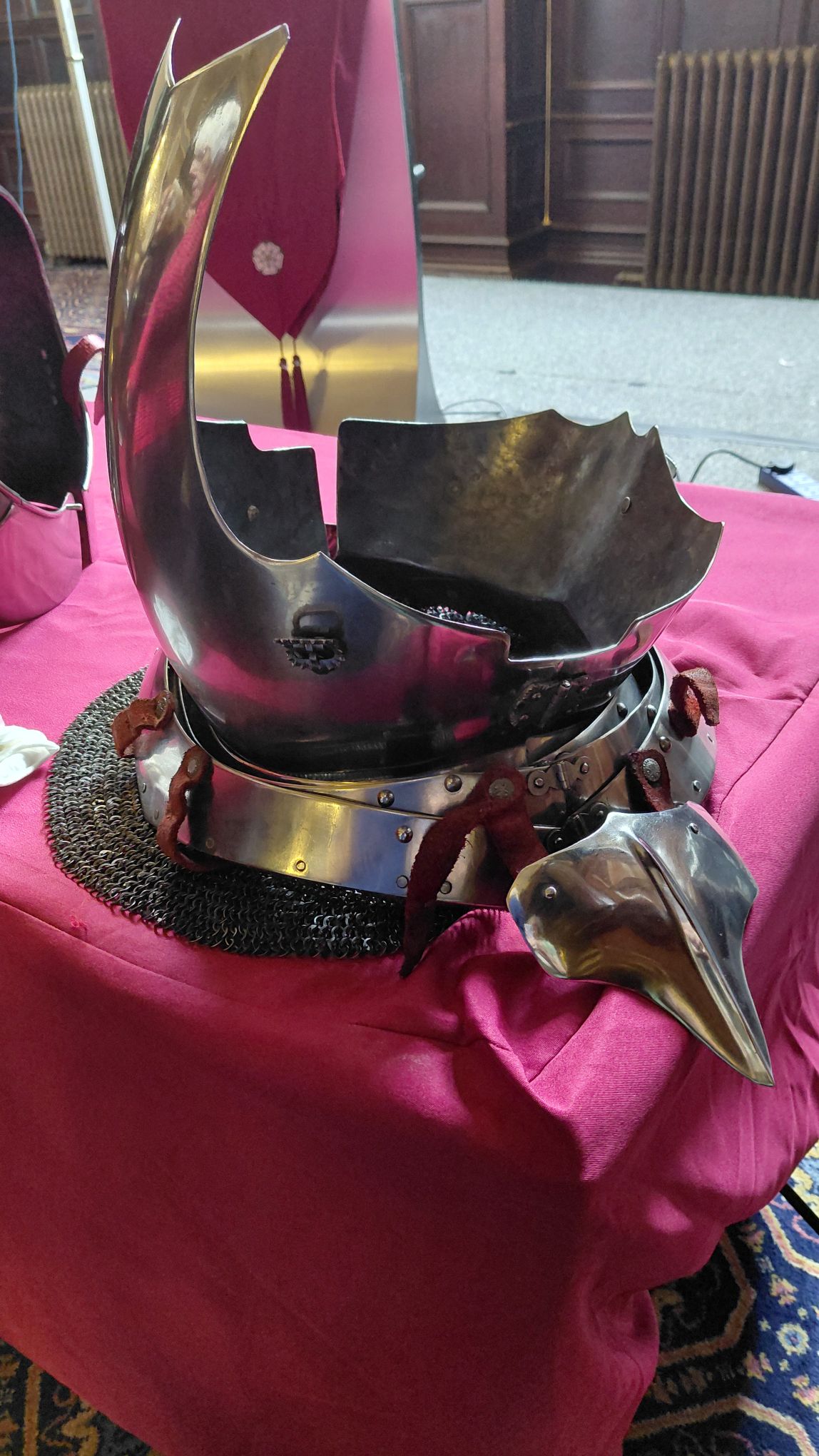 After time for a coffee, we all entered the hall for an excellent talk by Dr Tobias (Toby) Capwell and Dominic (Dom) Smee. They hadn’t met since they took part in the documentary follow-up to The King in the Car Park, called Richard III: The New Evidence. It was very relaxed and entertaining, with Toby remembering how he had become involved with Philippa Langley and the Looking for Richard project, and Dom describing the difficulties and challenges he had had to overcome in order to become Richard’s ‘stunt double’ (as Toby described it). He proved that Richard would have been capable of fighting, riding, charging and using weapons. In fact, Richard would have been very used to this, whereas to Dom it was all new as he’d only had a few months to train.