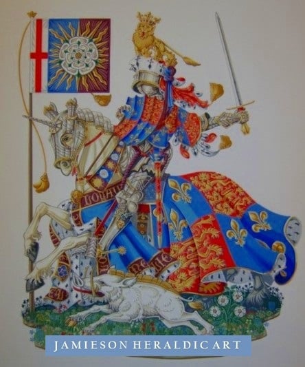 AJ: I design new ones for people who live in countries like the USA where there is no official heraldic body. In countries where there is a heraldic authority, I tend to paint existing arms. Having said that, I also work with people who want a new coat of arms granted by the authorities in England and Scotland.