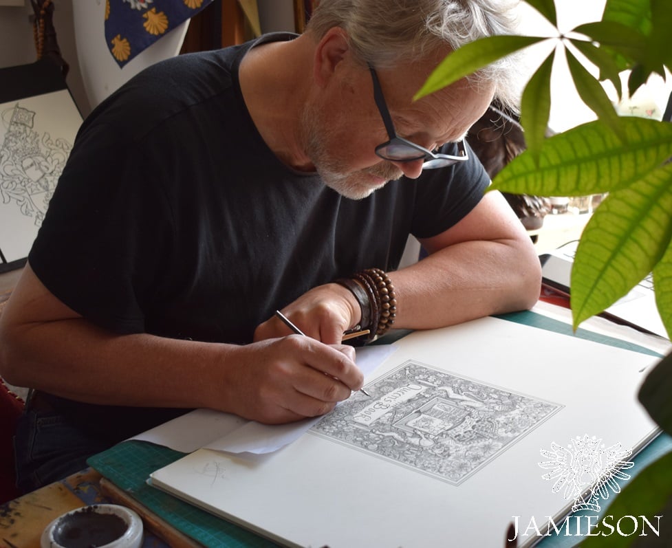 JL: How do you go about illustrating a heraldic coat of arms? How long does it take, typically?