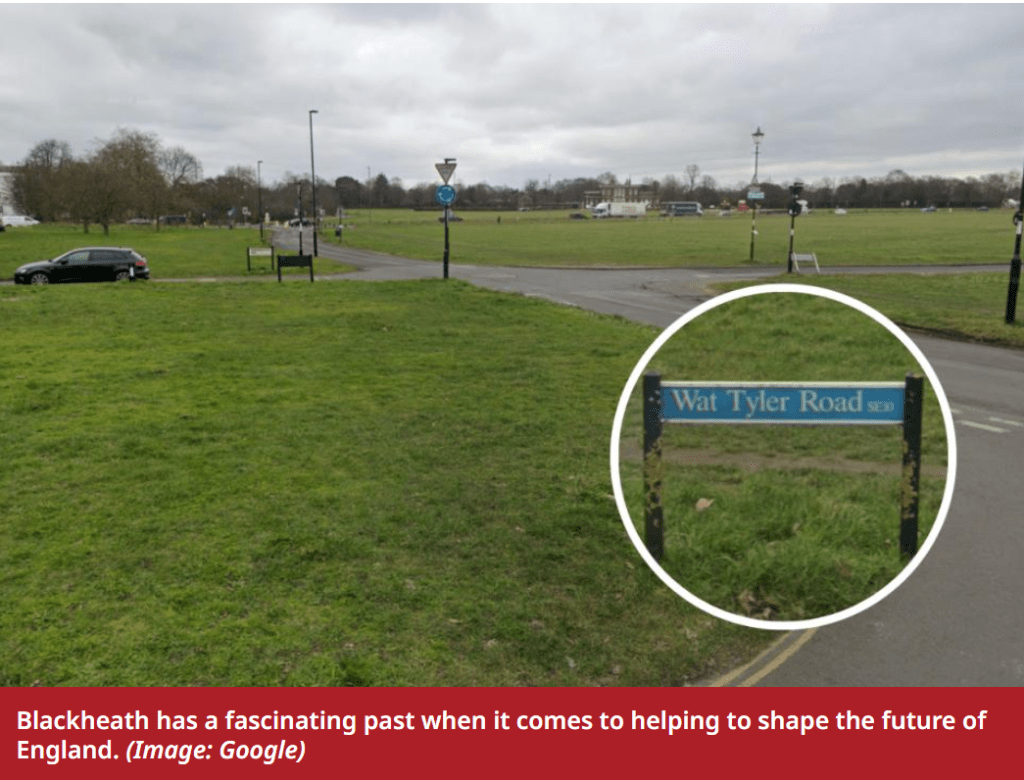 Here is the background to the article. In the 14th century, such was the unrest and resentment about unfair taxes and so on, that in 1381 thousands of Kent rebels gathered at Blackheath just outside of London. There they established a base camp on the evening of 12 June 12. But as they marched on London, led by the now famous Wat Tyler, it all culminated at Smithfield on 15 June 1381 when things got out of hand and Tyler was murdered in front of the king.